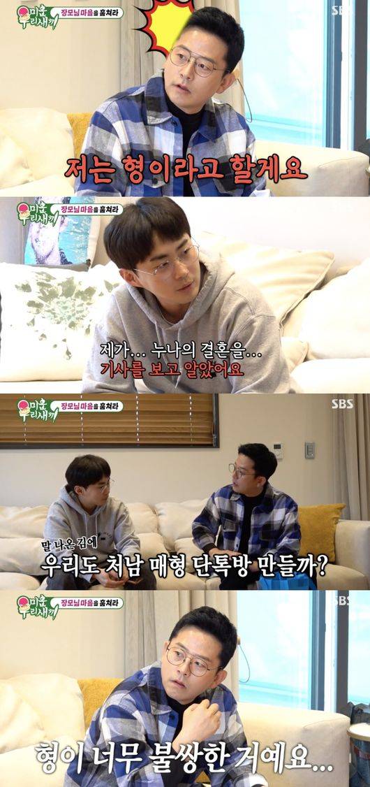 특히 예비 처남은 김준호와 김지민에게 서운한 게 있다고 밝혀 눈길을 끌었다. 그는 “제가 누나의 결혼을 기사를 보고 알았다. ‘미우새’ 보니까 7월 13일이라고 자막이 나왔다. 저희 남매 단톡방도 있다. 누나들은 다 알고 있더라. 저는 가족인데”이라고 토로했다.