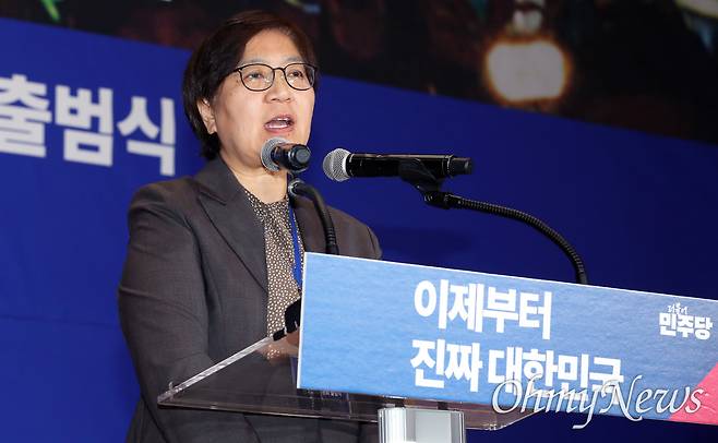 | ▲ 더불어민주당 이재명 대선 후보 선거대책위원회 총괄선대위원장을 맡은 정은경 전 질병관리청장이 4월 30일 서울 여의도 국회 의원회관에서 열린 중앙선거대책위원회 출범식에서 인사말을 하고 있다. |