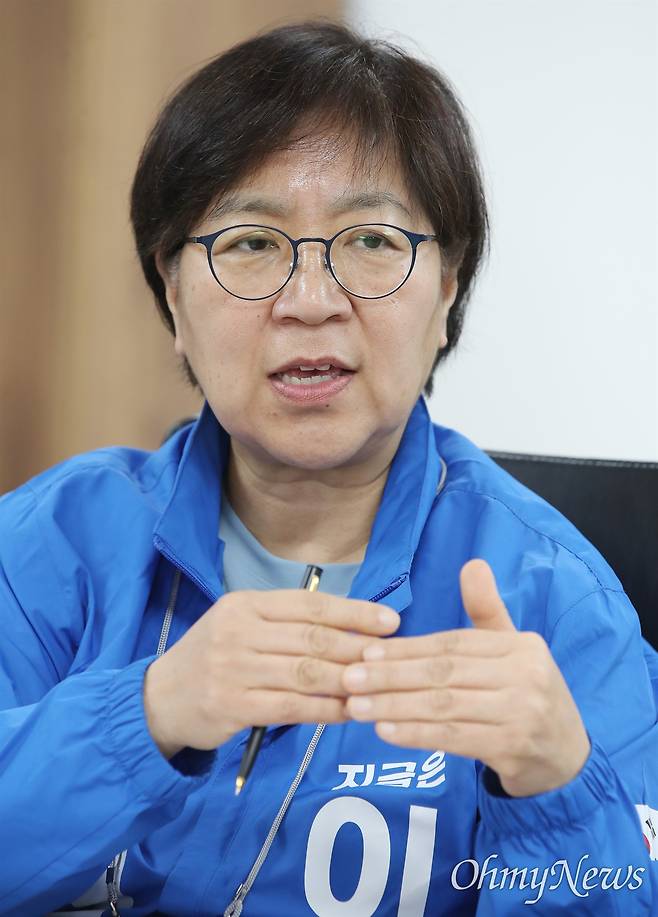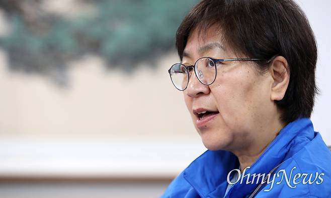 | ▲ 정은경 더불어민주당 총괄선거대책위원장이 16일 오전 서울 영등포구 더불어민주당 당사에서 오마이뉴스와 인터뷰를 하고 있다. |