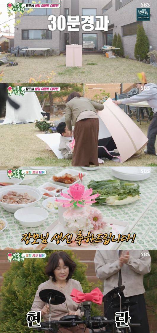 장모님 집에 도착한 김준호는 예비 처남과 함께 생일 잔치를 준비했다. 특히 김준호는 최근 드럼을 배우기 시작한 장모님을 위해 전자드럼 선물은 물론, 생일 잔치를 화려하게 장식할 통바베큐를 선보여 눈길을 끌었다.
