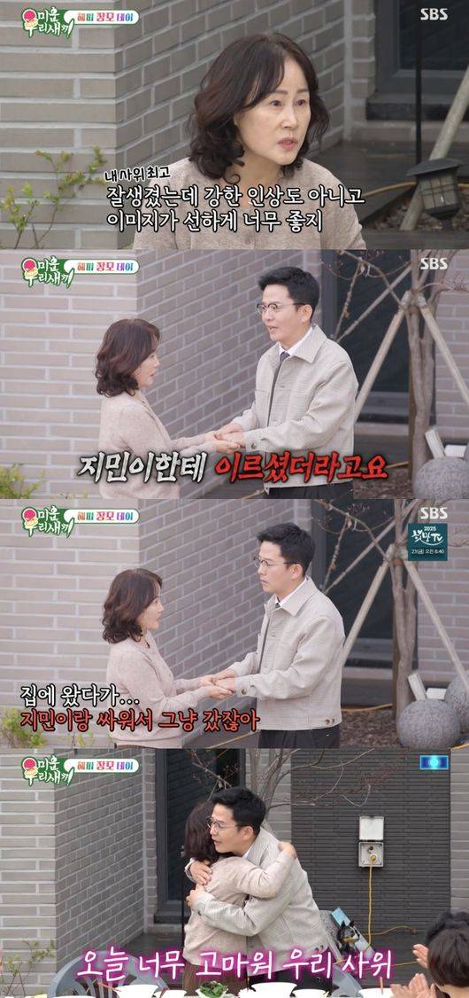 그러자 김지민 엄마는 “나는 작년인가 재작년인가 집에 왔다가 지민이랑 싸워서 그냥 갔잖아. 집안에 어른이 있는데 말도 없이 가냐”라며 “싸우고 나갔는데 내가 집안의 어른인데 나가길 왜 나가냐. 내가 그때 그냥 보내려다가 전화해서 다시 돌아왔다. 내가 그때 섭섭했다”라고 말했다. 이를 본 서장훈은 “섭섭하실 만하네 아무리 싸웠어도 어머니한테 간다고 말해야지”라고 지적했다.