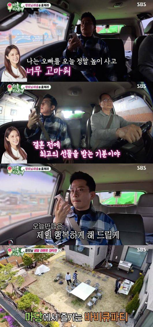 계속해서 김준호는 생일파티 쇼가 있다며 사물놀이패를 직접 초빙했고, 생화 케이크와 장모님 친구들의 선물까지 준비해 점수를 땄다. 이에 장모님은 친구들이 김준호를 칭찬하자 “잘생겼는데 강한 인상도 아니고 이미자기가 너무 좋지”라고 거들었다.