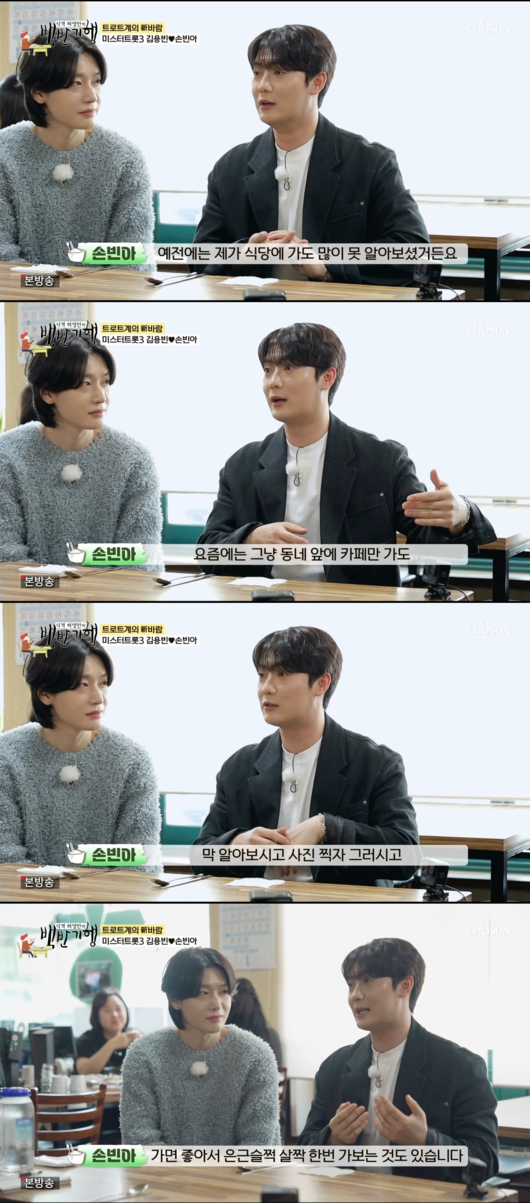 두 사람이 출연한 미스터트롯3은 끝난지 한 달 정도가 됐다고. 손빈아는 “예전에는 식당에 가도 못 알아보셨다. 요즘에는 동네 앞에 카페만 가도 막 알아보고 사진 찍고 그러신다. 좋아서 은근슬쩍 가보는 것도 있다”라고 솔직하게 밝혔다.