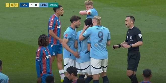 경기에서 가장 큰 논란의 중심에는 다름 아닌 맨시티의 간판 공격수 홀란이 있었다.