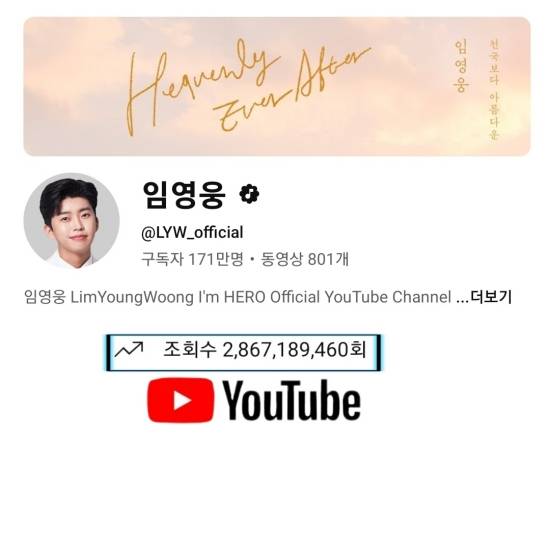 '천국보다 아름다운' 임영웅, 유튜브 채널 누적 조회수 28억 6천만 뷰 돌파
