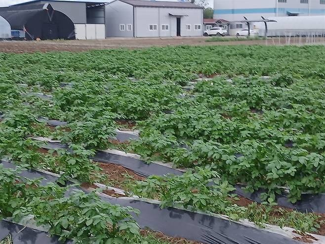 | ▲ 비를 맞아 생기 넘치는 감자밭 |