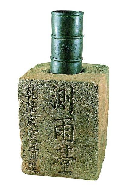 측우기는 빗물을 재는 그릇이라는 뜻. 비가 온 뒤에 측우기 속에 고인 빗물의 깊이를 쟀다. 측우기는 세 부분으로 나뉘어 있다. 청동으로 만든 원통 모양의 측우기 중심 부분과 이것을 받쳐 주는 돌로 만든 측우대, 고인 빗물의 깊이를 재는 자 등이다. 깊이가 약 30㎝, 지름이 약 15㎝ 정도 된다.