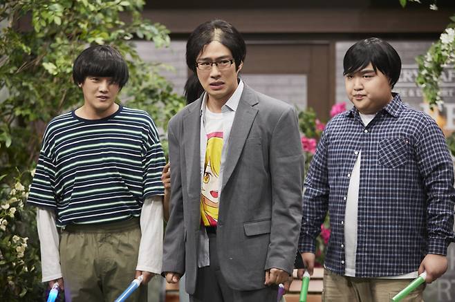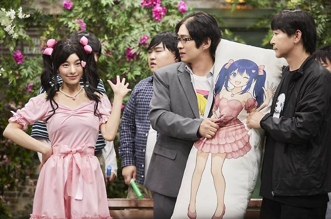 안재홍의 파격적인 비주얼과 신들린 활약은, 드라마 '마스크걸' 속 '주오남' 캐릭터를 'SNL 코리아'만의 감성과 스타일로 재해석한 코너에서 정점을 찍었다. 탈모 가발을 쓰고 등장한 안재홍은, 만화 캐릭터가 프린트된 대형 쿠션을 '아내'라 부르며 신동엽과 사랑 대결을 벌이는 '오타쿠' 연기로 폭소를 자아냈다. 이어 쿠션 속 캐릭터에게 진지하게 사랑을 고백하던 중, 현실에서 그 캐릭터와 똑같은 비주얼을 지닌 아라타 모모코가 등장하자, 안재홍과 신동엽은 태세를 전환하며 환상의 티키타카를 펼쳐내 또 한 번 웃음을 터뜨렸다.