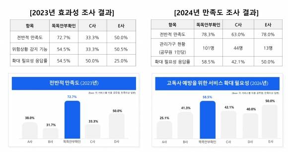 서울시복지재단이 2023년과 2024년 실시한 스마트돌봄서비스 효과성 및 만족도 조사 결과는 ‘똑똑안부확인서비스’의 효율성을 데이터로 보여준다.