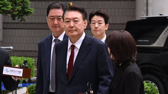 ▲ 윤석열 전 대통령이 19일 서울 서초구 중앙지방법원에서 열린 내란 우두머리 혐의, 직권남용 권리행사방해 혐의 사건 4차 공판에 출석하고 있다.