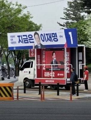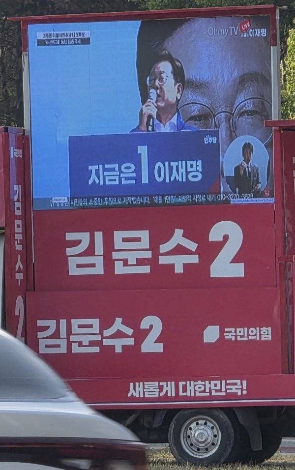 김문수 유세차가 "이재명 홍보?"..국힘의 황당 실수
