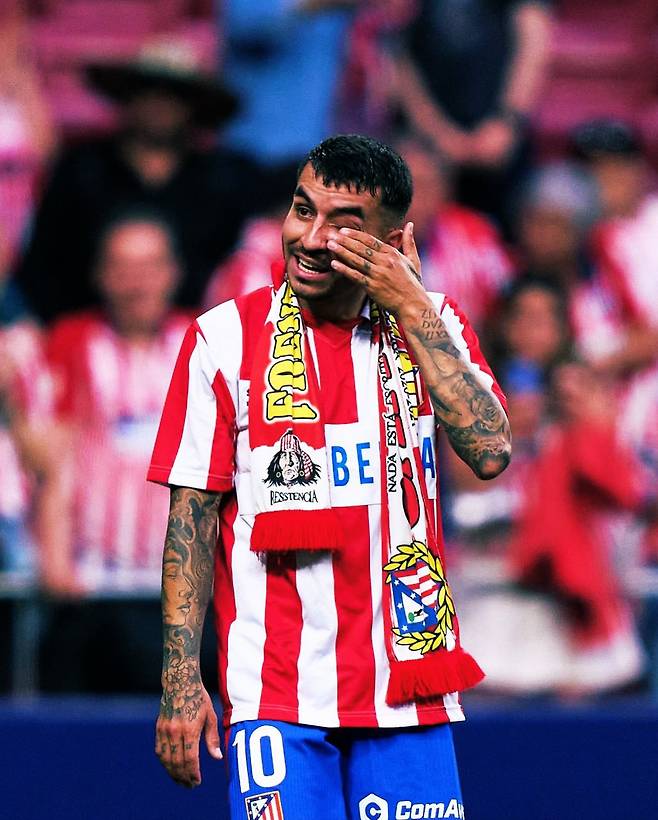 아틀레티코(AT) 마드리드 유니폼을 입고 치른 마지막 홈경기에서 득점을 터뜨리며 '유종의 미'를 거둔 앙헬 코레아(30·아르헨티나). 그가 AT 마드리드 팬들에게 작별 인사를 하는 과정에서 끝내 참았던 눈물을 흘렸다.