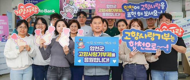 합천군은 5월16일 거창군과 함께 공무원 간 고향사랑기부제 상호 교차 기부를 실시했다. 이번 기부는 고향사랑기부제의 취지를 살리고 두 지역의 경제를 함께 활성화하기 위해 마련됐다.
