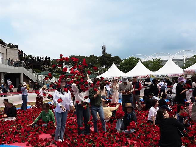 | ▲ 17일, 제 15회 곡성세계장미축제 '황금 장미를 찾아라' 행사 중 축제를 즐기는 방문객들의 모습 |