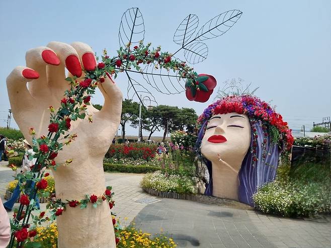 | ▲ 곡성세계장미축제 장미정원 안의 여인의 동상 |