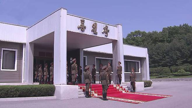 통일각은 판문점 북쪽 지역에 있는 건물로, 과거 남북회담이 판문점 북측에서 열릴 때 회담 장소로 이용됐던 시설입니다.