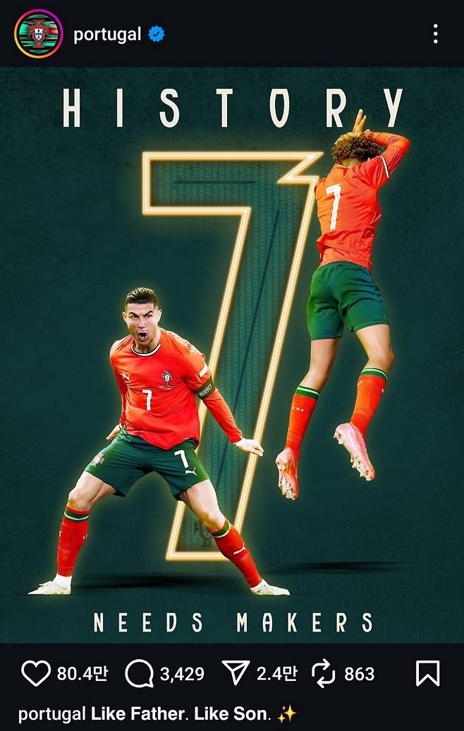 사진= 게티이미지코리아, 포르투갈 축구협회 인스타그램 캡처