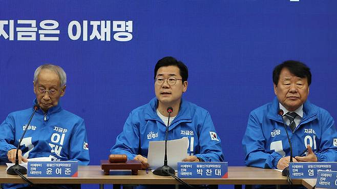 ▲ 더불어민주당 상임총괄선대위원장인 박찬대 대표 직무대행 겸 원내대표가 19일 서울 여의도 당사에서 열린 중앙선거대책위원회의에서 발언하고 있다.