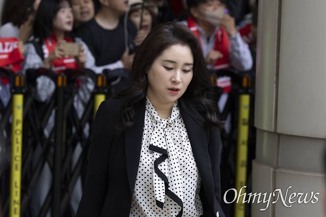 윤씨를 태운 차량은 공판 시간인 오전 10시에 임박해서야 서관 출입구 앞에 도착했다. 윤씨가 내리자 취재진이 다가갔다.