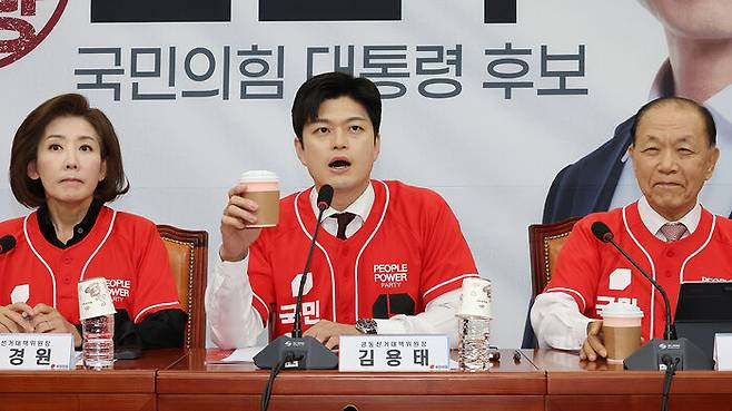 김용태 비상대책위원장은 오늘 국회에서 열린 선대위 회의에서 커피가 담긴 일회용 컵을 들어 보이며 "어제 어떤 분이 '이 커피를 8천 원에서 1만 원 받는데 원가가 120원이더라' 이런 말씀을 하셨다"며 "커피 소상공인 여러분께서 마치 80배 정도 폭리를 취하는 것처럼 들린다"고 지적했습니다.
