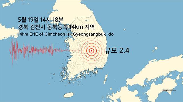 오늘(19일) 오후 2시 18분에 경북 김천시에서 규모 2.4의 지진이 발생했습니다.