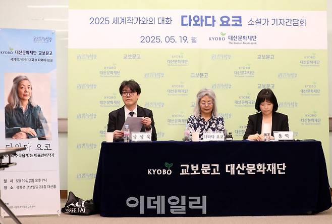 [이데일리 김태형 기자] 일본어와 독일어를 넘나들며 문학 세계를 구축하고 있는 ‘다와다 요코’ 작가가 19일 서울 광화문 교보빌딩에서 기자간담회를 갖고 있다.