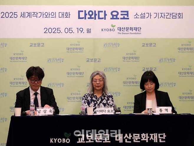 [이데일리 김태형 기자] 일본어와 독일어를 넘나들며 문학 세계를 구축하고 있는 ‘다와다 요코’ 작가가 19일 서울 광화문 교보빌딩에서 기자간담회를 갖고 있다.