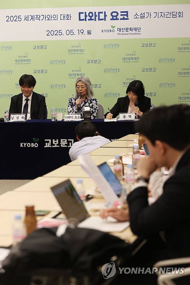 (서울=연합뉴스) 강민지 기자 = 19일 서울 종로구 교보빌딩에서 '2025 세계작가와의 대화, 다와다 요코 소설가 기자간담회'가 열리고 있다. 2025.5.19