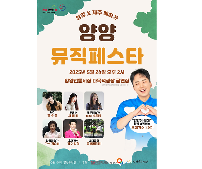 강원지역 청년 공연예술단체인 별빛유랑단은 오는 24일 양양전통시장 장날에 맞춰 제주지역 예술가들이 출연하는 '양양 뮤직페스타'를 개최한다고 밝혔습니다.