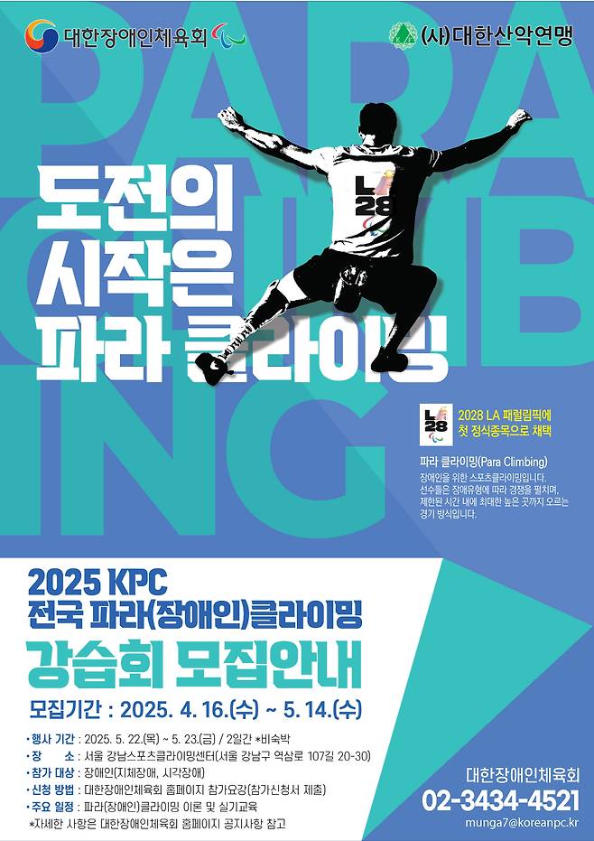 대한장애인체육회,22~23일 전국파라클라이밍 강습회@서울 강남스포츠클라이밍센터