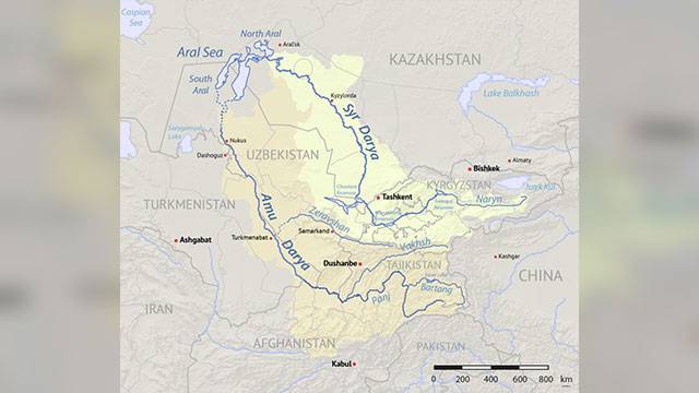 아무다리야강은 파미르 고원에서 발원해 북서쪽으로 흘러 아랄해로 유입되고, 시르다리야강은 키르키스스탄 톈산 산맥 서쪽에서 시작해 카자흐스탄을 가로질러 아랄해로 흘러듭니다.