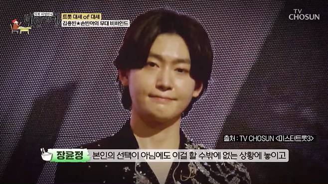 김용빈은 당시 장윤정의 이같은 심사평에 눈물을 쏟았다. 김용빈은 "초등학교 때부터 활동해서 학교생활을 잘 못 했다. 친구들과 가고 싶은 데도 잘 못 가고, 수학여행, 졸업여행 다 못 갔다. 그 나이대 할 수 있는 걸 못 했다"면서 신동의 고충을 털어놓았다.