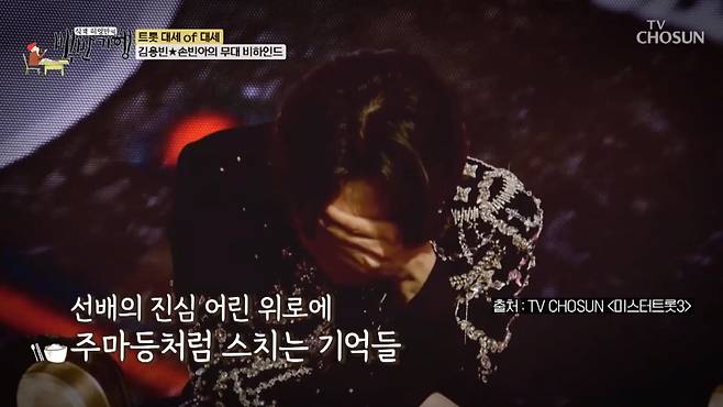 김용빈은 과거 슬럼프를 겪은 적 있다. 그는 우울증과 공황장애로 7년간 활동을 중단했었다. 꼬마 때부터 알던 장윤정과 만남이 기억에 남는다는 김용빈은 "내가 어떻게 커왔는지 누나가 봤다"고 말했다. '미스터트롯3'에서 만난 장윤정은 "아이 때 너무 큰 재능을 받으면 그 길을 갈 수밖에 없다. 외로웠을 것 같다. 잘 극복하고 노래 실력도 일취월장하고 멋진 남자 가수가 돼준 것에 고맙다"고 격려했다.