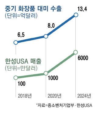 미국 내 K뷰티 열풍과 함께 회사도 쑥쑥 성장하고 있다. 한성USA는 창업 이듬해인 2018년 매출액이 100만달러에 불과했지만 2023년 3000만달러, 지난해 6000만달러(약 840억원)를 달성했다.