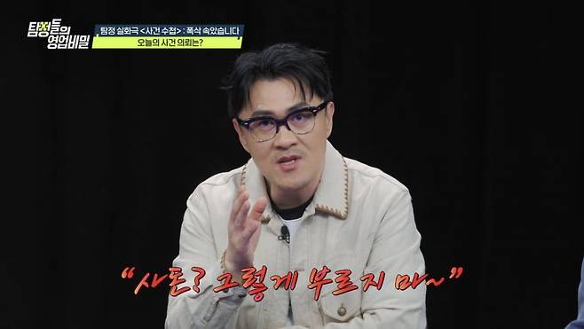 한편 이번 주 '탐정들의 영업비밀'에는 신들린 입담의 개그맨 신규진이 게스트로 함께 한다. 신규진은 웹예능 '노빠꾸탁재훈'에서 '탁재훈의 오른팔'로도 활약허고 있다. 데프콘은 "여성 출연자 중 신호를 준 사람은 없었나, 예원 씨는 어떠냐"라며 신규진의 열애설을 부추긴다. 이에 신규진은 예원과의 관계에 대해 솔직한 입장을 밝힌다.