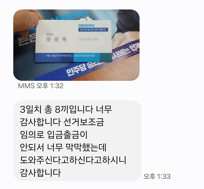 "이재명 후보가 지정한 도시락 업체가 있거든요. 사장님이 도시락 업체에 연락을 해서 결제를 해주시면 저희가 추후에 방문해서 숙박비용이랑 도시락 가격을 같이 대금 처리할게요."