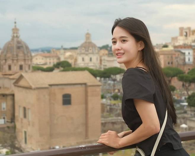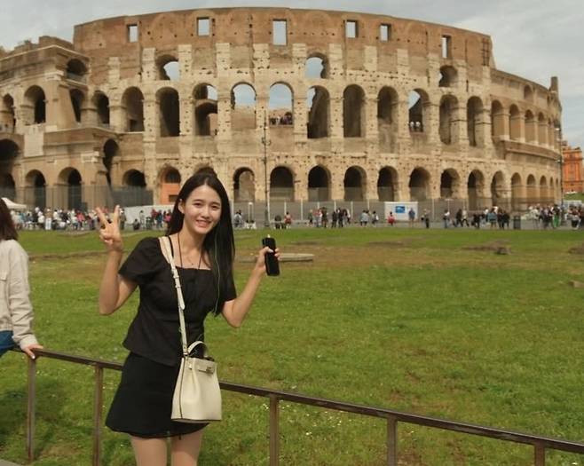 공개된 사진 속 남보라는 이탈리아로 떠난 신혼여행 중 로마의 대표 고대유적 중 하나인 콜로세움 앞에서 귀엽게 포즈를 취하고 있어 눈길을 끈다.