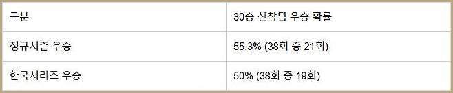 | ▲ 30승 선착팀 우승 가능성(기록 출처: 야구기록실 kbreport) |