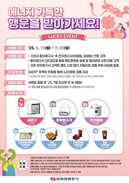 "전자 청구서 전환하고 정보 변경하세요"…한전, 경품 이벤트