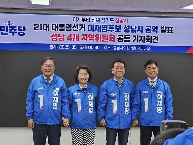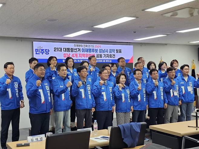 | ▲ 성남시의회 더불어민주당협의회는 19일 성남 4개 지역위원회 공동 기자회견을 통해 제21대 대통령선거 더불어민주당 이재명 후보의 성남시 공약을 발표했다. |