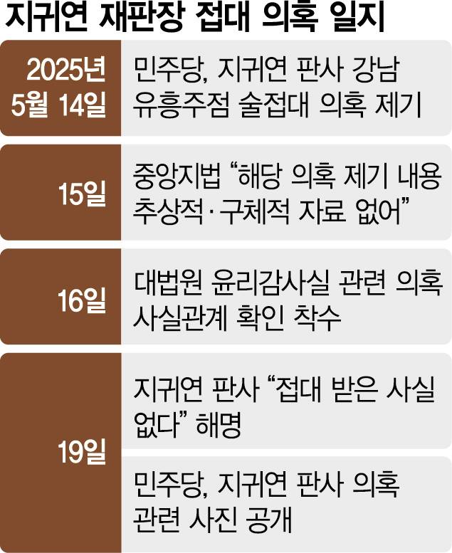 윤석열 전 대통령 내란 사건 재판을 맡고 있는 서울중앙지법 형사합의25부 재판장 지귀연 부장판사가 정치권에서 제기된 이른바 ‘룸살롱 접대’ 의혹에 대해 “사실이 아니다”라고 직접 해명했다. 더불어민주당은 관련 사진을 공개하며 “뻔뻔하게 거짓말을 했다”고 공세 수위를 높였다. 이번 사태가 진실 게임 양상으로 치닫는 가운데 사법부 권위와 신뢰가 무너지고 있다는 우려가 커진다.