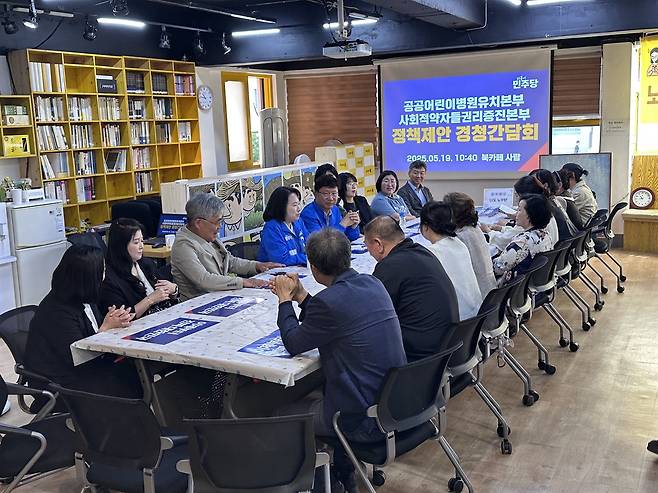 기자회견 후 참석자 20여 명은 민주당 울산시당에서 이선호, 전은수, 오상택 선거대책위원장 등 시당 관계자가 참석한 가운데 정책제안 경청간담회를 갖고 '공공어린이병원 설립, 사회복지, 민생, 사회적 약자 권리 증진 정책 확대' 등 다양한 정책을 두고 토론하는 한편 이재명 후보의 공약을 두고 질의 응답하는 시간을 가졌다.