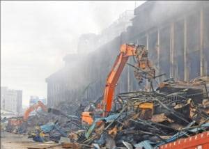 금호타이어 광주공장에서 발생한 대형 화재(사진)로 금호타이어 공장 이전 문제가 수면 위로 다시 떠올랐다. 전남 함평에 새 부지를 마련해 둔 금호타이어가 광주공장을 다시 재건하는 게 효율적이냐는 지적이 나오면서다. 업계에선 광주공장 부지의 광주시 용도변경 여부와 부지 개발에 참여할 사업자 유무가 이전 사업의 핵심 변수가 될 것으로 본다.