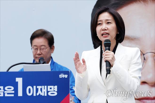 | ▲ 이준석 개혁신당 대선 후보와의 갈등 끝에 탈당한 허은아 전 개혁신당 대표가 19일 서울 영등포구 타임스퀘어 광장에서 열린 이재명 더불어민주당 대선 후보의 선거유세에서 이재명 후보에 대한 지지를 선언하고 있다. |