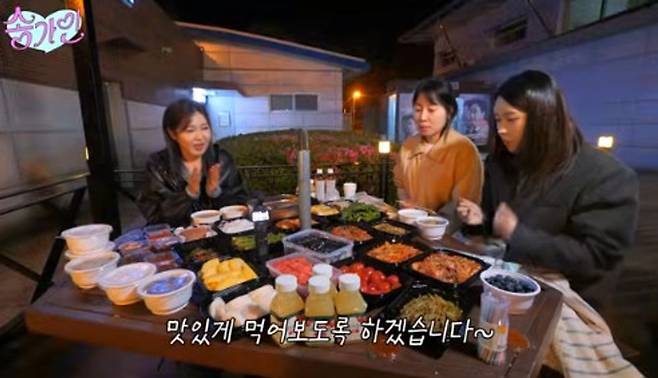 이어 차 트렁크를 공개하며 “의상 반 음식 반이다. 항상 어딜 갔다 오면 지역 특산품이나 이런 것들을 또 싸주신다”라고 밝혔다. 팬들이 싸준 음식들로 늦은 식사를 하는 송가인과 스태프들. 연포탕, 갈비찜, 보쌈, 김치, 밑반찬, 나물부터 각종 소스, 과일까지 한식뷔페 수준의 도시락 상이 차려졌다.