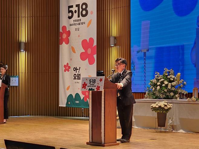 정근식 서울시 교육감은 영상 기념사를 통해 "우리가 위기를 넘기고 오늘의 평화로운 일상을 누리는 것은, 1980년 5월 광주의 역사적 경험이 공동체 안에서 살아 숨쉬기 때문이다. '과거가 현재를 도울 수 있는가, 죽은 자가 산 자를 구할 수 있는가'라는 한강 작가의 질문을 되새기며, 헌법 가치와 민주주의가 다시 흔들리지 않도록 함께 뜻을 모으고 미래세대와 함께 내일의 희망을 만들어가겠다"고 강조했다.