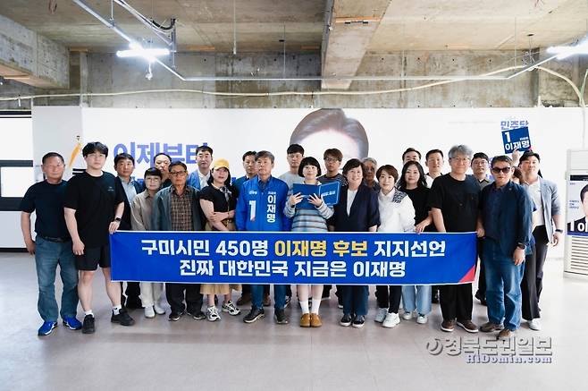 구미시민 450명은 이재명 후보가 대한민국의 21대 대통령으로 당선돼 그의 훌륭한 자질과 능력으로 새로운 대한민국을 만들어 나갈 수 있기를 강력히 희망하며 공개적으로 지지 선언했다.