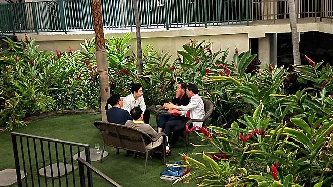 오늘 오전 홍 전 시장의 선대위 합류를 설득하기 위해 미국 하와이에 도착한 국민의힘 특사단은 빅아일랜드 모처에서 홍 전 시장을 만나 식사를 함께 하는 등 약 4시간 동안 회동을 가졌습니다.