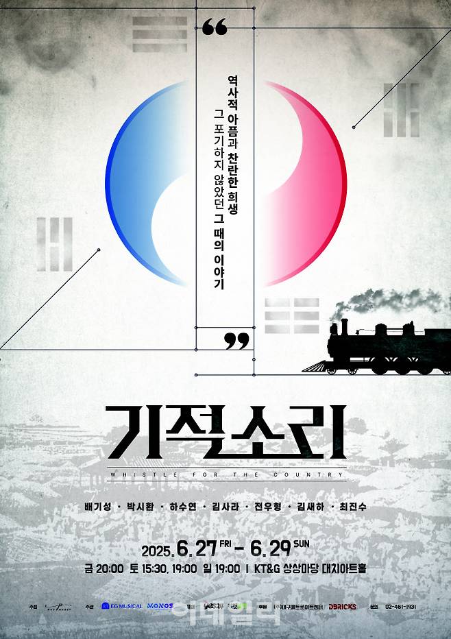 [이데일리 김현식 기자] 뮤지컬 ‘기적소리’가 6월 27일부터 29일까지 사흘간 서울 강남구 KT&G 상상마당 대치아트홀에서 공연한다.