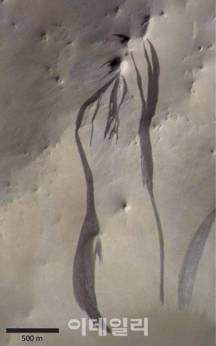 [이데일리 박지애 기자] 화성 표면에 나타나는 줄무늬가 화성 표면에 액체 상태의 물이 존재한다는 증거라는 일부 과학자들의 주장을 반박하는 연구결과가 나왔다. 가파른 경사에서 미세한 먼지층이 쓸려 내려가 줄무늬가 형성된 것으로 분석됐다.